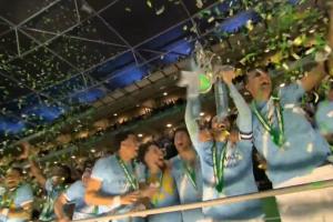捧杯瞬间🏆曼城夺得本赛季联赛杯冠军!队长B席带队举起奖杯!