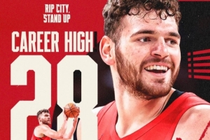 赛后,开拓者官方发布克林根数据海报,祝贺他得分生涯新高。
