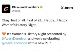 骑士官推的此番宣传文案完全引用了在2024年妇女节当天,缺席比赛的詹姆斯场边坐在湖人老板珍妮·巴斯及湖人高管兰比斯夫人之间时,向这两位女性致以节日祝福的话语。