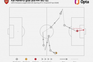 数据统计显示,这是阿森纳本赛季欧冠联赛中第四粒由替补球员连线取得的进球,也是单赛季欧冠联赛任一球队由替补球员连线进球之最。