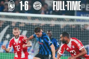 亚特兰大:16强首回合1-6拜仁,次回合下周客战