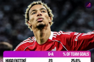 重大打击,埃基蒂克本赛季各项赛事参与23球,利物浦队内最高