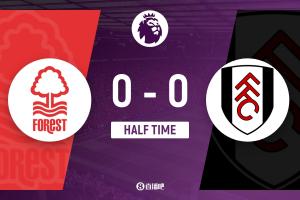 上半场比赛结束,诺丁汉森林0-0富勒姆。